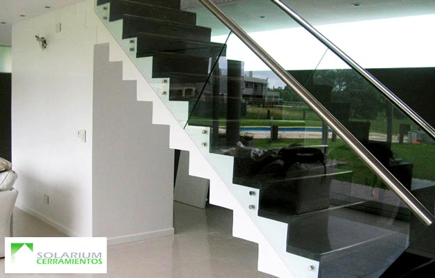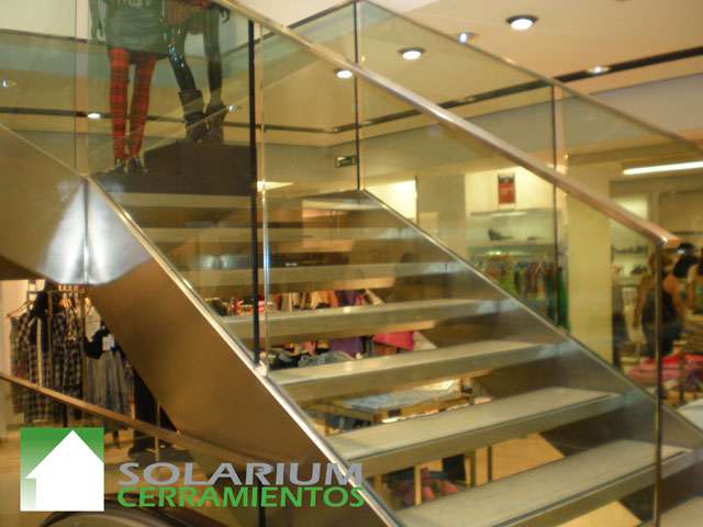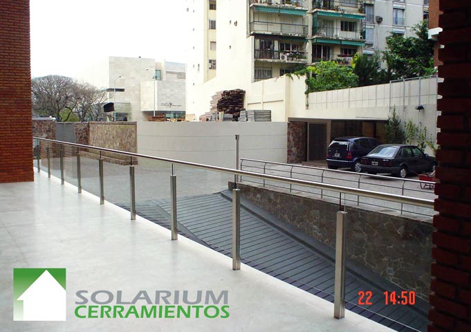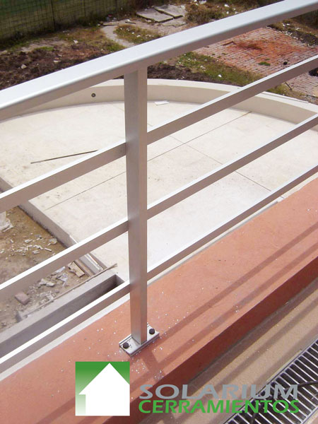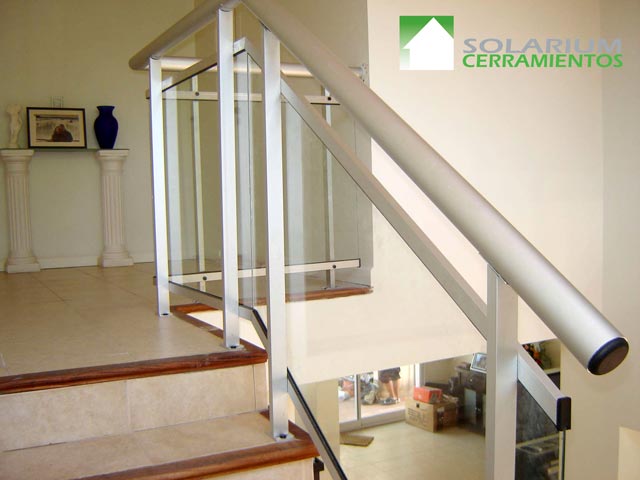 Realizamos barandas con colores anodizados o pintados con cristal de seguridad o barrotillos horizontales o verticales.